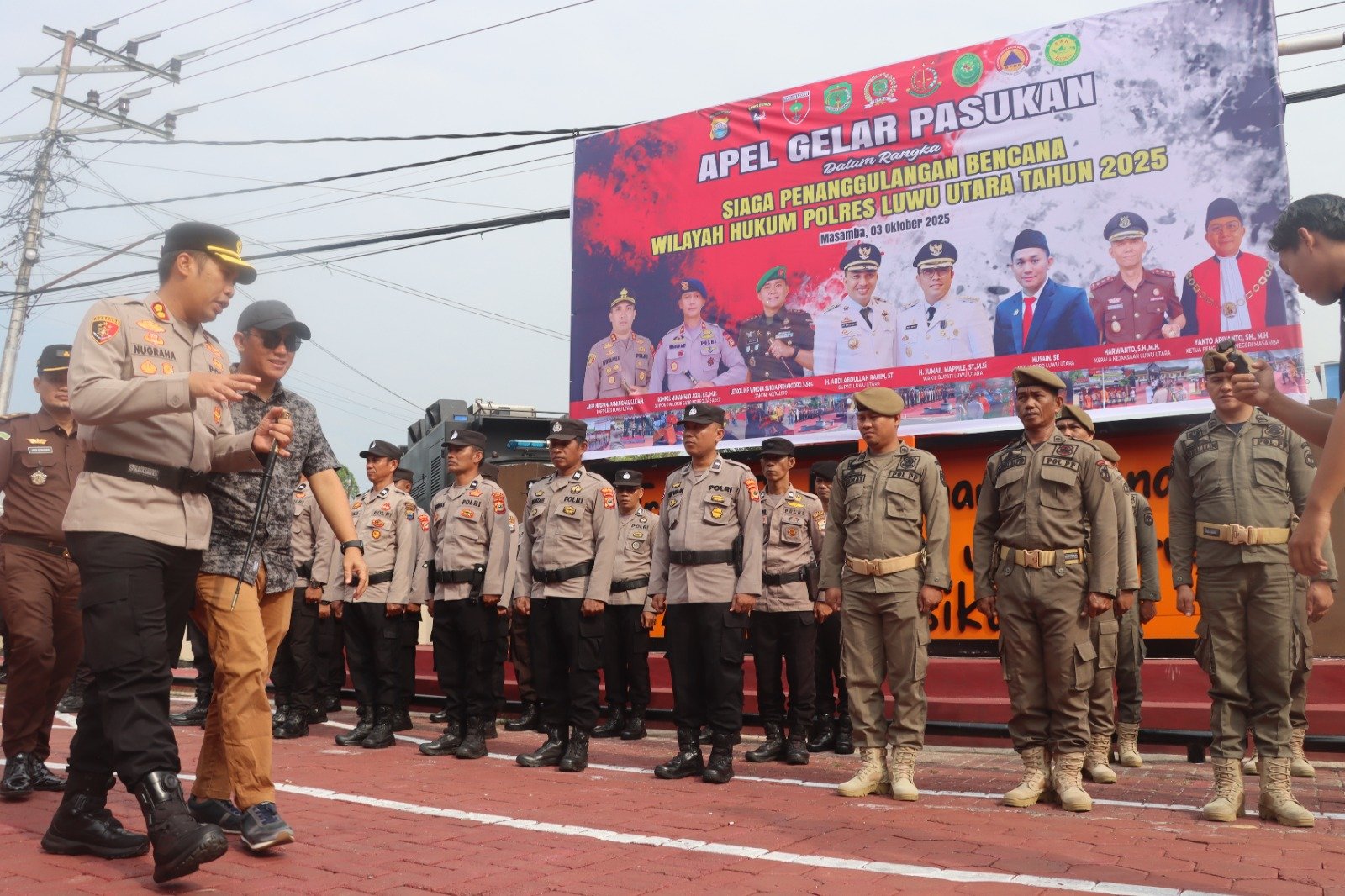 Luwu Utara– Menghadapi potensi bencana alam yang kerap melanda wilayahnya, Kapolres Luwu Utara AKBP Nugraha Pamungkas memimpin Apel Gelar Pasukan Siaga Penanggulangan Bencana di halaman Mapolres Luwu Utara. Kegiatan ini diikuti oleh personel Polres, Brimob, TNI, Basarnas, Taruna Siaga Bencana (Tagana) Dinas Sosial, Satpol PP, Damkar, tenaga kesehatan, hingga jajaran Forkopimda.